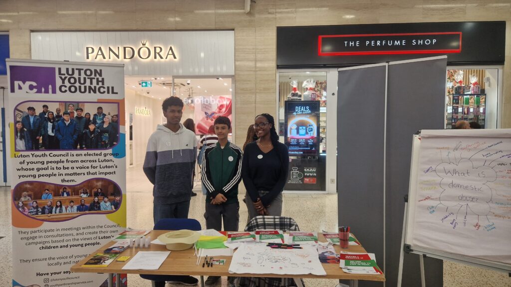The Youth Councillors also held a stall within Luton Point over half term, raising awareness of the signs of Domestic Abuse in correlation to Luton Council and Womens Aid’s Raising Red and Flying Green Campaign. We engaged with nearly 90 members of the public in conversation around warning signs, support services and available and writing positive messages to survivors. Thank you to all those who came and spoke to us! If you or someone you know may be suffering from Domestic Abuse, please reach out to https://womensaidinluton.org/ who can support those of all genders.