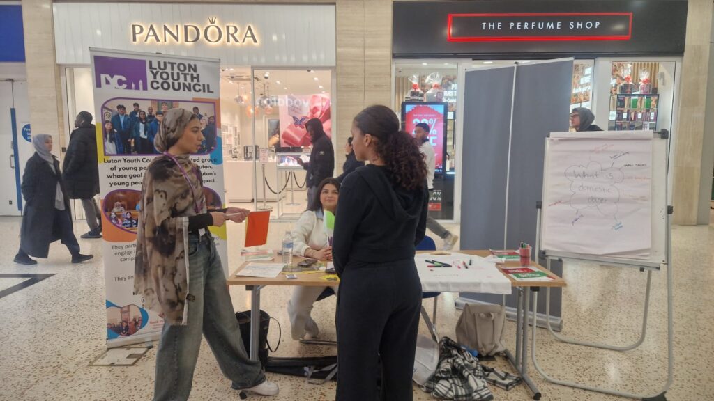 The Youth Councillors also held a stall within Luton Point over half term, raising awareness of the signs of Domestic Abuse in correlation to Luton Council and Womens Aid’s Raising Red and Flying Green Campaign. We engaged with nearly 90 members of the public in conversation around warning signs, support services and available and writing positive messages to survivors.